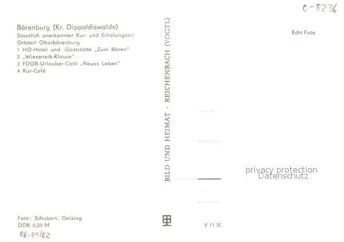 73050607 Oberbaerenburg Baerenburg Hotel-Gaststaette Zum Baeren Wieseneck-Klause Urlauber-Cafe Neues Leben postalisch nicht gelaufen Erhaltung siehe scans [PaolaD17] KatCode: 11110014290010