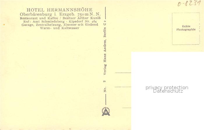 43349527 Oberbaerenburg Baerenburg Hotel Hermannshoehe postalisch nicht gelaufen Erhaltung siehe scans [FriedD77] KatCode: 11110014290010