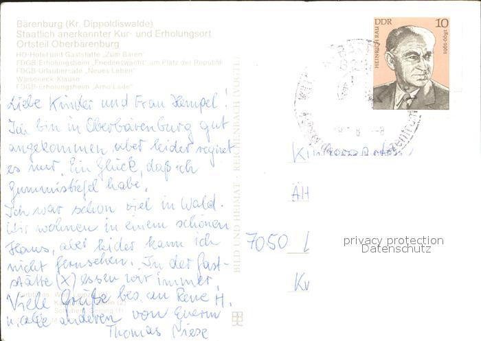 72333159 alte Postkarte Oberbaerenburg Baerenburg Hotel Restaurant zum Baeren Cafe Neues Leben Wieseneck-Klause postalisch gelaufen Erhaltung siehe scans KatCode: 11110014290010