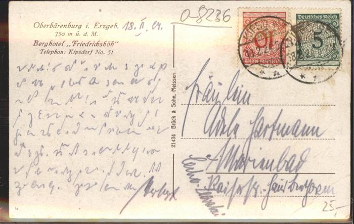 40909399 Oberbaerenburg Baerenburg Oberbärenburg Erzgebirge Berghotel Friedrichshöh Kipsdorf x KatCode 11110014290010