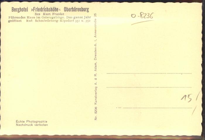 40909133 Oberbaerenburg Baerenburg Oberbärenburg Erzgebirge Hotel Friedrichshöhe * KatCode 11110014290010