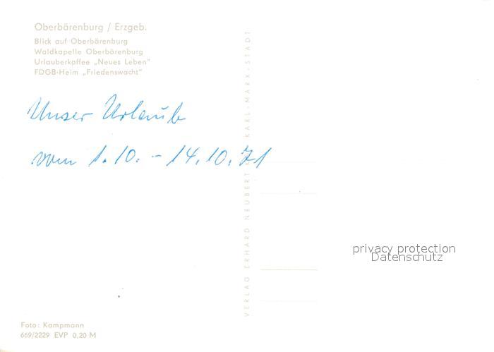 73062283 Oberbaerenburg Baerenburg Ortsansicht Waldkapelle Urlauberkaffee FDGB Heim postalisch nicht gelaufen Erhaltung siehe scans [FriedD77] KatCode: 11110014290010
