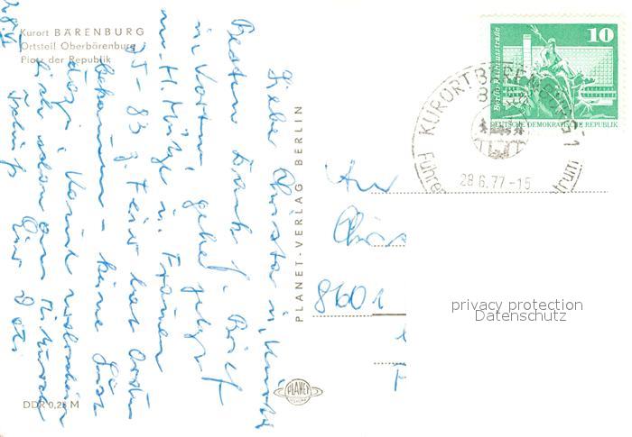 73371313 alte Postkarte Oberbaerenburg Baerenburg Platz der Republik postalisch gelaufen Erhaltung siehe scans [KathaD81] KatCode: 11110014290010