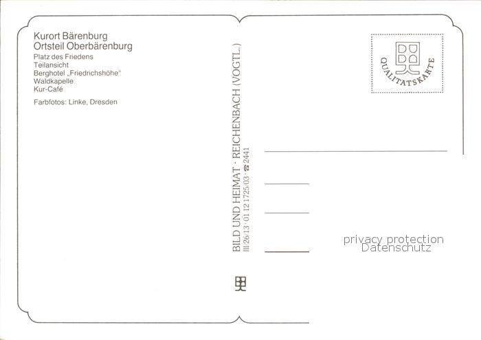 72353819 Oberbaerenburg Baerenburg Platz des Friedens Berghotel Friedrichshoehe Waldkapelle Kurcafe postalisch nicht gelaufen Erhaltung siehe scans KatCode: 11110014290010