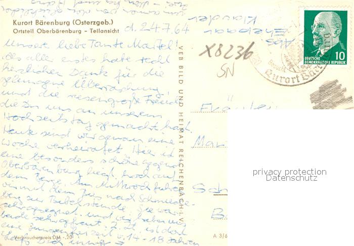 72977080 alte Postkarte Oberbaerenburg Baerenburg Teilansicht postalisch gelaufen Erhaltung siehe scans [FriedD77] KatCode: 11110014290010
