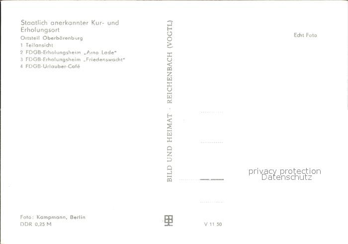 72358479 Oberbaerenburg Baerenburg Teilansicht FDGB Erholungsheime Arno Lade und Friedenswacht FDGB Urlauber Cafe postalisch nicht gelaufen Erhaltung siehe scans KatCode: 11110014290010
