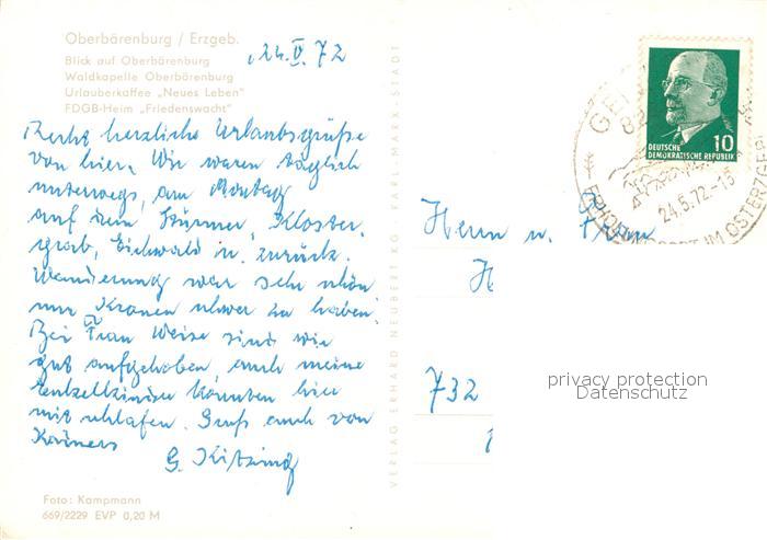 73062293 alte Postkarte Oberbaerenburg Baerenburg Teilansicht Waldkapelle Urlauberkaffee FDGB Heim postalisch gelaufen Erhaltung siehe scans [FriedD77] KatCode: 11110014290010
