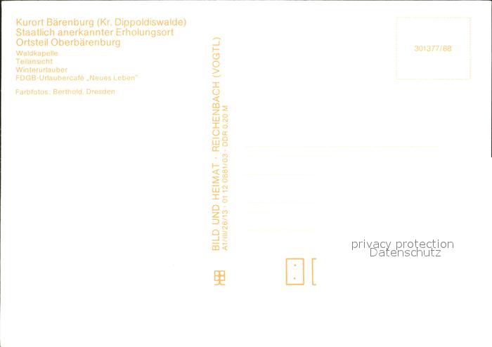 72353822 Oberbaerenburg Baerenburg Waldkapelle Winterurlauber FDGB Urlaubercafe postalisch nicht gelaufen Erhaltung siehe scans KatCode: 11110014290010