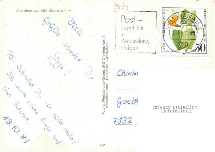 74050991 alte Postkarte Oberbalzheim Balzheim BW Ortsansichten Spielplatz postalisch gelaufen Erhaltung siehe scans [WerneD78] KatCode: 11110008425140