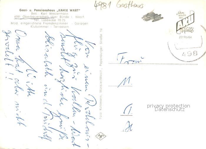 73704250 alte Postkarte Oberbauerschaft Buende Westfalen Gasthaus Kahle Wart Innen und Aussen postalisch gelaufen Erhaltung siehe scans [LiesaD40] KatCode: 11110005770016