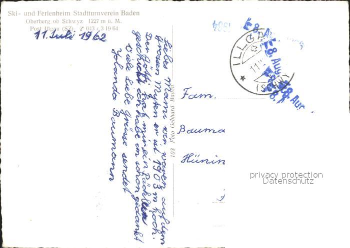 11643192 alte Postkarte Oberberg Schwyz Ferienheim Stadtturnerverein Baden postalisch gelaufen KatCode: 11470170500524