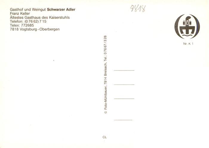 73929139 Oberbergen Vogtsburg BW Gasthof Weingut Schwarzer Adler postalisch nicht gelaufen Erhaltung siehe scans [WerneD78] KatCode: 11110008315133
