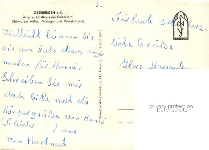 73759994 alte Postkarte Oberbergen Vogtsburg Schwarzer Adler am Kaiserstuhl postalisch gelaufen Erhaltung siehe scans [FriedD77] KatCode: 11110008315133
