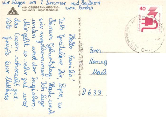 73878464 alte Postkarte Oberbernhards Naturpark Jugendherberge Gastraeume postalisch gelaufen Erhaltung siehe scans [WerneD78] KatCode: 11110006631012