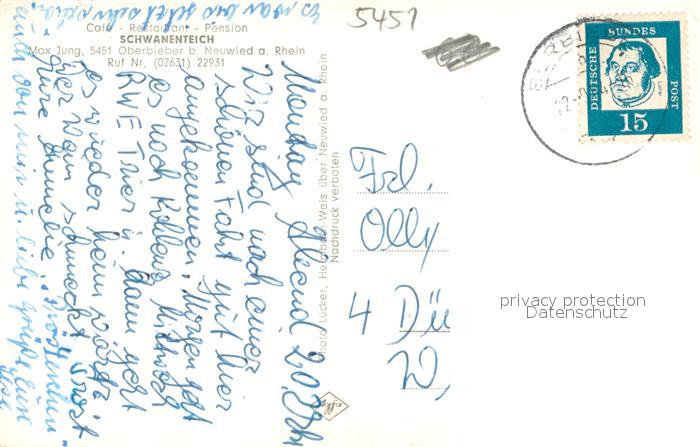 73706428 alte Postkarte Oberbieber Cafe Restaurant Schwanenteich postalisch gelaufen Erhaltung siehe scans [WerneD78] KatCode: 11110007138045