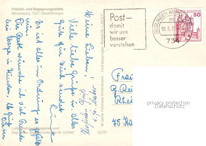 73207886 alte Postkarte Oberboehringen Fliegeraufnahme Michelsberg Freizeit Begegnungsstaette postalisch gelaufen Erhaltung siehe scans [KathaD81] KatCode: 11110008117007