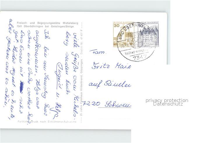 72921895 alte Postkarte Oberboehringen Freizeit- Begegnungsstaette Michelsberg postalisch gelaufen Erhaltung siehe scans [NatalD47] KatCode: 11110008117007