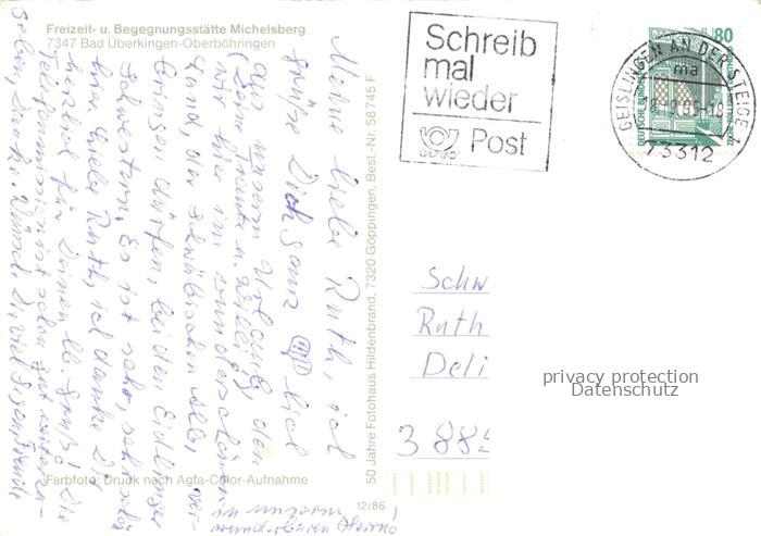 74028147 alte Postkarte Oberboehringen Freizeit- und Begegnungsstaette Michelsberg postalisch gelaufen Erhaltung siehe scans [FriedD77] KatCode: 11110008117007