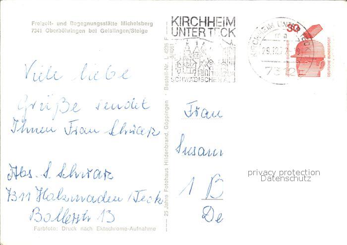 72425857 alte Postkarte Oberboehringen Freizeit und Begegnungsstaette Michelsberg Fliegeraufnahme postalisch gelaufen Erhaltung siehe scans KatCode: 11110008117007