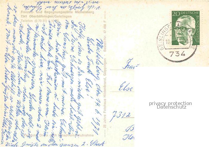 74026862 alte Postkarte Oberboehringen Freizeit- und Begegnunsstaette Michelsberg postalisch gelaufen Erhaltung siehe scans [FriedD77] KatCode: 11110008117007