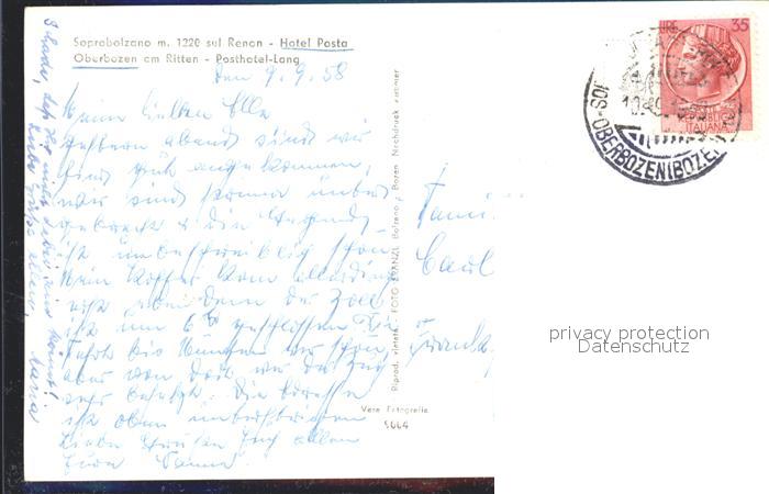 old postcard Oberbozen Ritten Hotel Posta postalisch gelaufen Erhaltung siehe scans