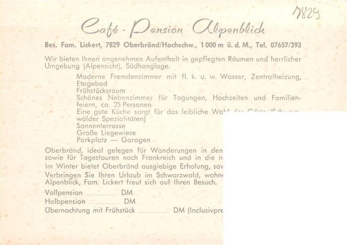 73931187 Oberbrand Titisee-Neustadt Cafe Pension Alpenblick postalisch nicht gelaufen Werbekarte (keine Postkarte) Erhaltung siehe scans [WerneD78] Werbekarte (keine Postkarte) Wern Katcode 11110008315113