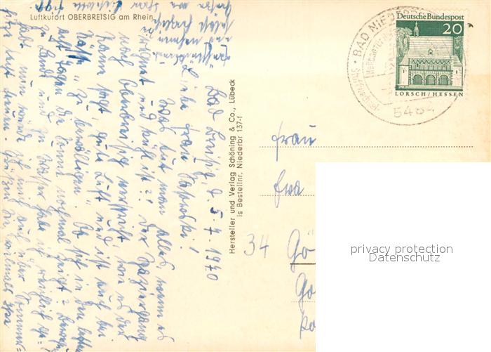 73672686 alte Postkarte Oberbreisig Fliegeraufnahme postalisch gelaufen Erhaltung siehe scans [WerneD78] KatCode: 11110007131006