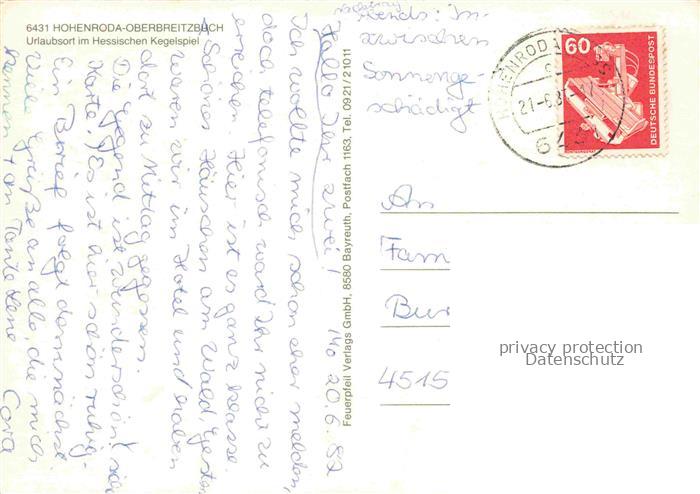 74042687 alte Postkarte Oberbreitzbach Panorama Feriendorf Schloss Hotel Tennisanlage postalisch gelaufen Erhaltung siehe scans [FriedD77] KatCode: 11110006632010