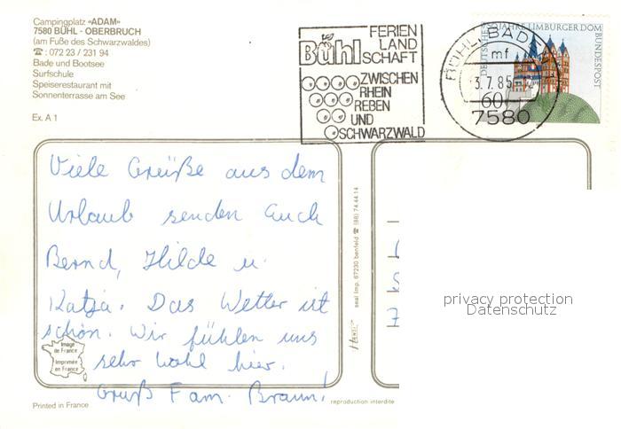 73634413 alte Postkarte Oberbruch Buehl Campingplatz Adam Ferienpark Erholungspark See postalisch gelaufen Erhaltung siehe scans [FriedD77] KatCode: 11110008216007