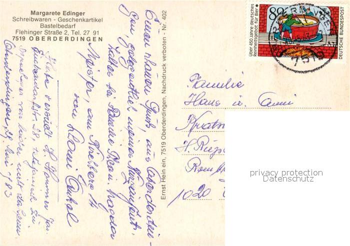 73207884 alte Postkarte Oberderdingen Kirche postalisch gelaufen Erhaltung siehe scans [KathaD81] KatCode: 11110008215059
