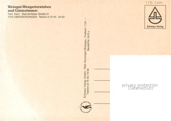 73714139 Oberderdingen Weingut Wengerterstuben Gaestezimmer postalisch nicht gelaufen Erhaltung siehe scans [WerneD78] KatCode: 11110008215059