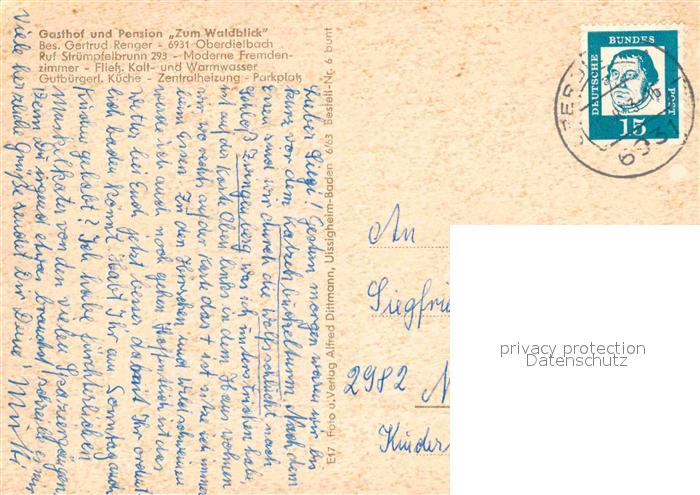 72770041 alte Postkarte Oberdielbach Gasthof Pension Zum Waldblick postalisch gelaufen Erhaltung siehe scans [AndreD76] KatCode: 11110008225118