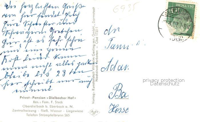 73782441 alte Postkarte Oberdielbach Privat-Pension Dielbacher Hof Aussenansicht postalisch gelaufen Erhaltung siehe scans [LiesaD40] KatCode: 11110008225118