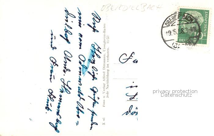 73774642 alte Postkarte Oberdielbach und Unterdielbach Panorama Wolfsschlucht Kirche Hindenburg-Turm Aussichtsturm postalisch gelaufen Erhaltung siehe scans [FriedD77] KatCode: 11110008225118