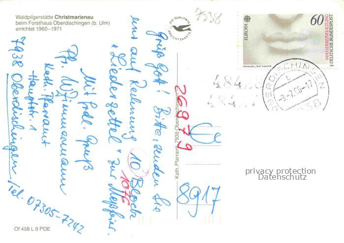 74041072 alte Postkarte Oberdischingen Christmarienau Waldpilgerstaette beim Forsthaus postalisch gelaufen Erhaltung siehe scans [FriedD77] KatCode: 11110008425088