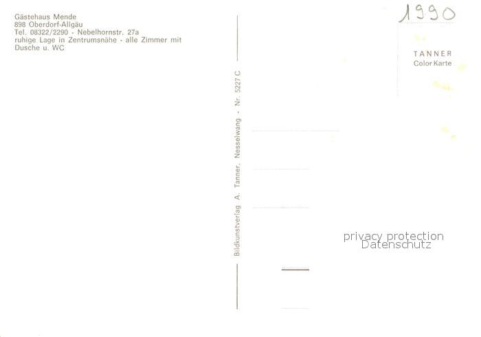 72932214 Oberdorf Allgaeu Gaestehaus Mende postalisch nicht gelaufen Erhaltung siehe scans [LiesaD40] KatCode: 11110009780143