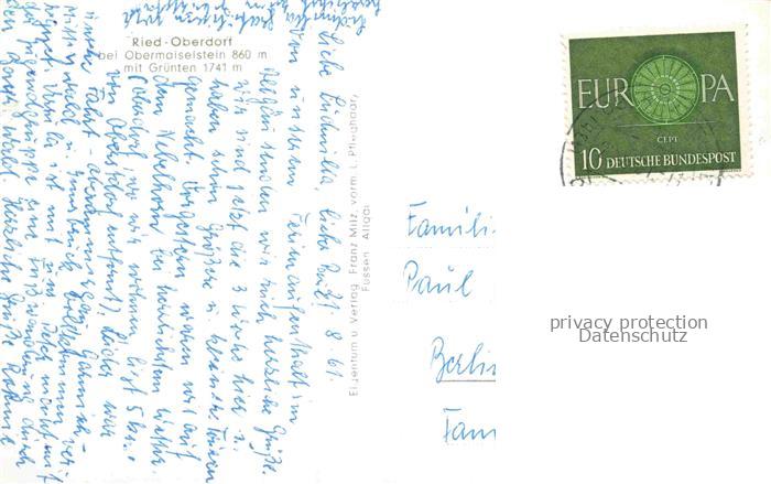 74153329 alte Postkarte Oberdorf Ried-Oberdorf Obermaiselstein Oberallgaeu Bayern Panorama Blick gegen Gruenten postalisch gelaufen Erhaltung siehe scans [FriedD77] KatCode: 11110009780131