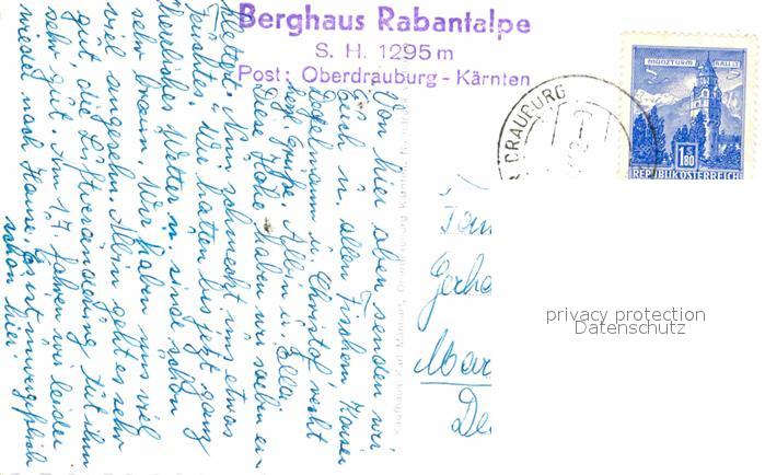 72919864 alte Postkarte Oberdrauburg Kaernten Berghaus Rabantalm postalisch gelaufen Erhaltung siehe scans [WerneD78] KatCode: 11390212020625
