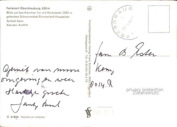 71974421 alte Postkarte Oberdrauburg Kaernten Kaerntner Tor Hochstadel Schwimmbad Simmerlach Hauptplatz Schloss Stein postalisch gelaufen Erhaltung siehe scans KatCode: 11390212020625