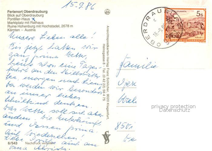 13212930 alte Postkarte Oberdrauburg Kaernten Pontiller Haus Fliegeraufnahme Ruine-Hohenburg Hochstadel postalisch gelaufen Erhaltung siehe scans [LiesaD40] KatCode: 11390212020625