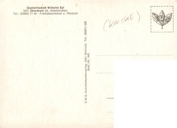 73904997 Oberdreisbach Weitefeld Gastwirtschaft Wilhelm Eyl Gastraeume Kirche postalisch nicht gelaufen Erhaltung siehe scans [WerneD78] KatCode: 11110007132113