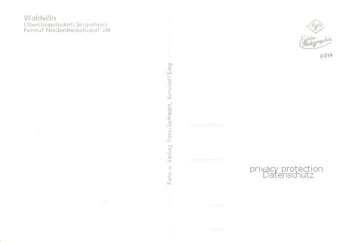 73865135 Oberdresselndorf Burbach Waldvilla postalisch nicht gelaufen Erhaltung siehe scans [FriedD77] KatCode: 11110005970008