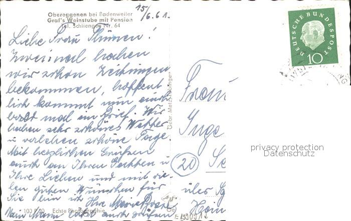 31705739 alte Postkarte Obereggenen Graf’s Weinstube mit Pension postalisch gelaufen Erhaltung siehe scans KatCode: 11110008336078