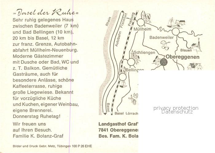 73725001 Obereggenen Landgasthof Grafs Weinstube Restaurant Landschaftspanorama postalisch nicht gelaufen Werbekarte (keine Postkarte) Erhaltung siehe scans [FriedD77] KatCode: 11110008336078