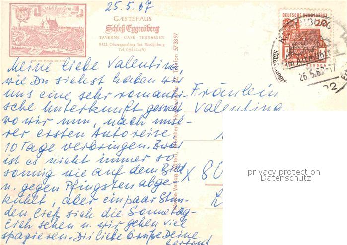 72631540 alte Postkarte Obereggersberg Gaestehaus Schloss Eggersberg postalisch gelaufen Erhaltung siehe scans [LiesaD40] KatCode: 11110009273164