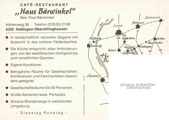74156925 Oberelfringhausen Hattingen NRW Café-Restaurant Speisesaal Terrasse Garten Felderbachtal Panorama postalisch nicht gelaufen Werbekarte (keine Postkarte) Erhaltung siehe scans [Karloger] KatCode: 11110005954016