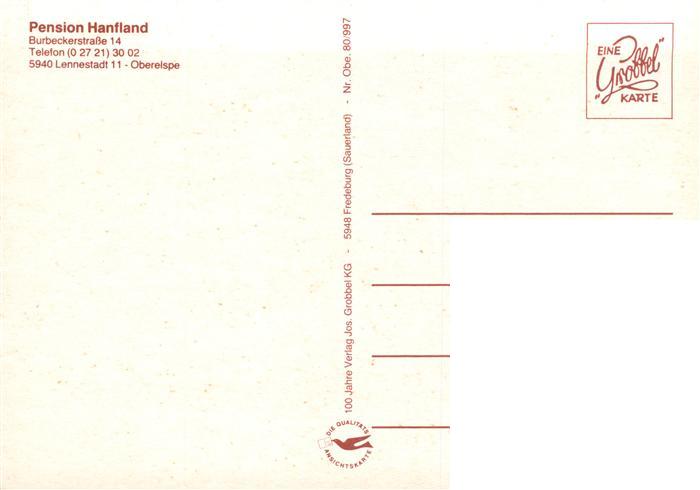 73875876 Oberelspe Pension Hanfland Gastraeume Kegelbahn postalisch nicht gelaufen Erhaltung siehe scans [FriedD77] KatCode: 11110005966020