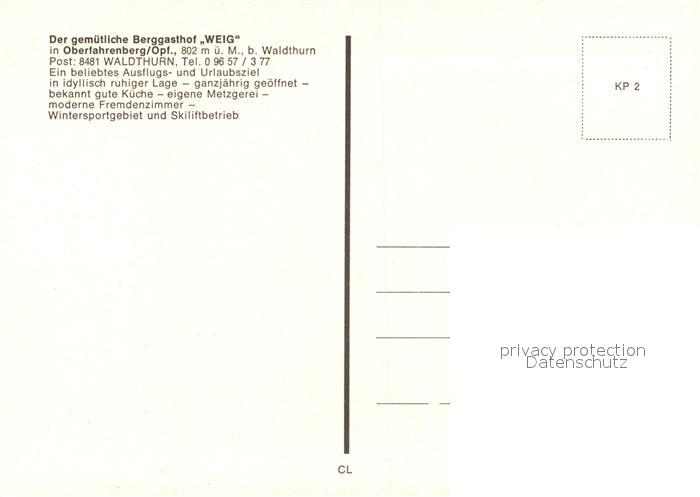 73575423 Oberfahrenberg Waldthurn Berggasthof Weig Kapelle Kreuz postalisch nicht gelaufen Erhaltung siehe scans [FriedD77] KatCode: 11110009374165
