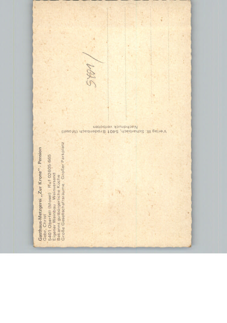 31138396 Oberfell Gasthaus und Metzgerei zur Krone postalisch nicht gelaufen KatCode: 11110007137220