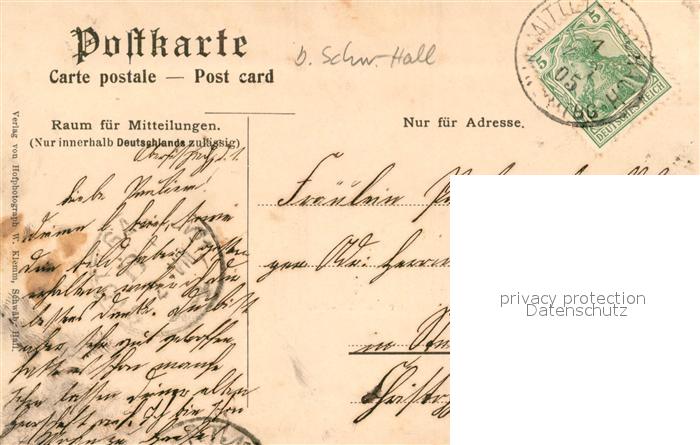 33567271 alte Postkarte Oberfischbach Grosserlach Kirche Pfarrhaus Wirtschaft Baeckerei Handlung postalisch gelaufen Erhaltung siehe scans [KathaD81] KatCode: 11110008119024
